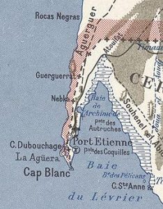 Ras Nouadhibou (Arabic: رأس نواذيبو) is a 60-kilometre (37 mi) peninsula or headland divided between Mauritania and Western Sahara on the African coast of the Atlantic Ocean. It is internationally known as Cabo Blanco in Spanish or Cap Blanc in French (both meaning “White Headland“). InView More